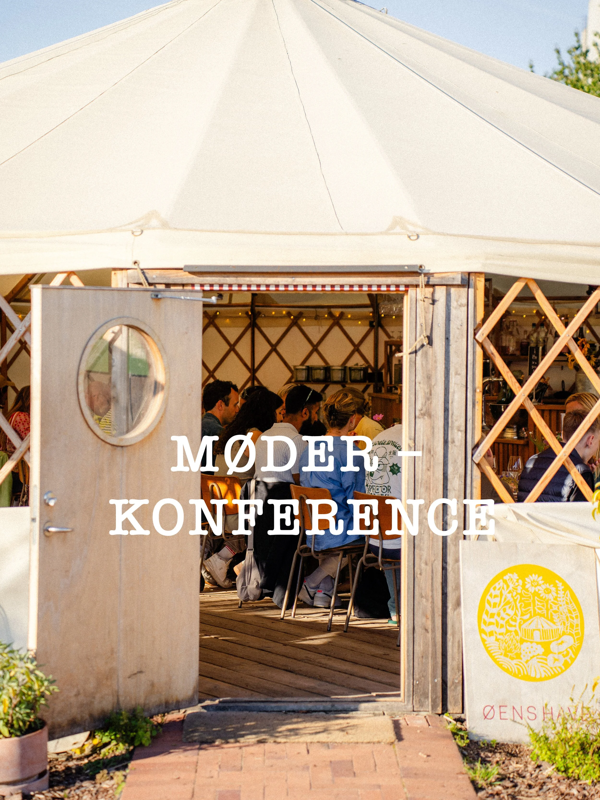 Saml dit team i de inspirerende rammer i vores bylandbrug – perfekt til en teambuilding-dag eller et dagsmøde midt i byen, men langt fra kontorhverdagen. Vores to håndlavede træyurter danner en helt særlig ramme for fællesskab, kreativitet og meningsfulde oplevelser. Den store yurt har plads til op til 120 gæster, og den lille yurt til 55.